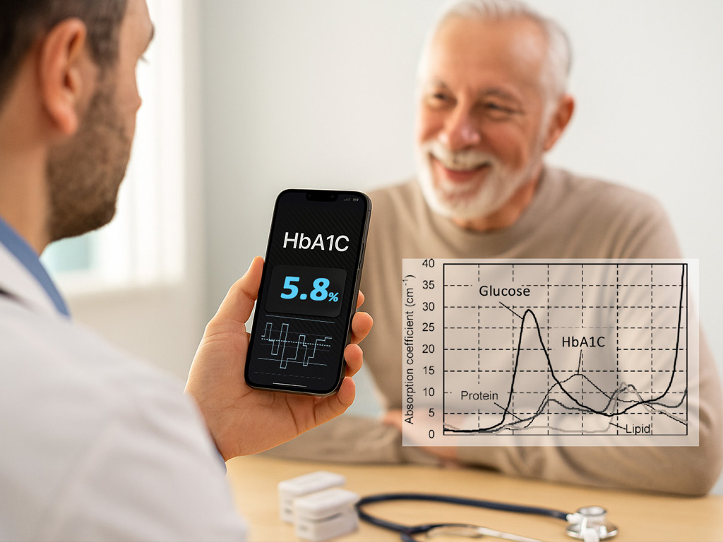 First-ever non-invasive HbA1C monitoring powered by artificial intelligence, validated through over 8,000 clinical tests with ~80% accuracy.